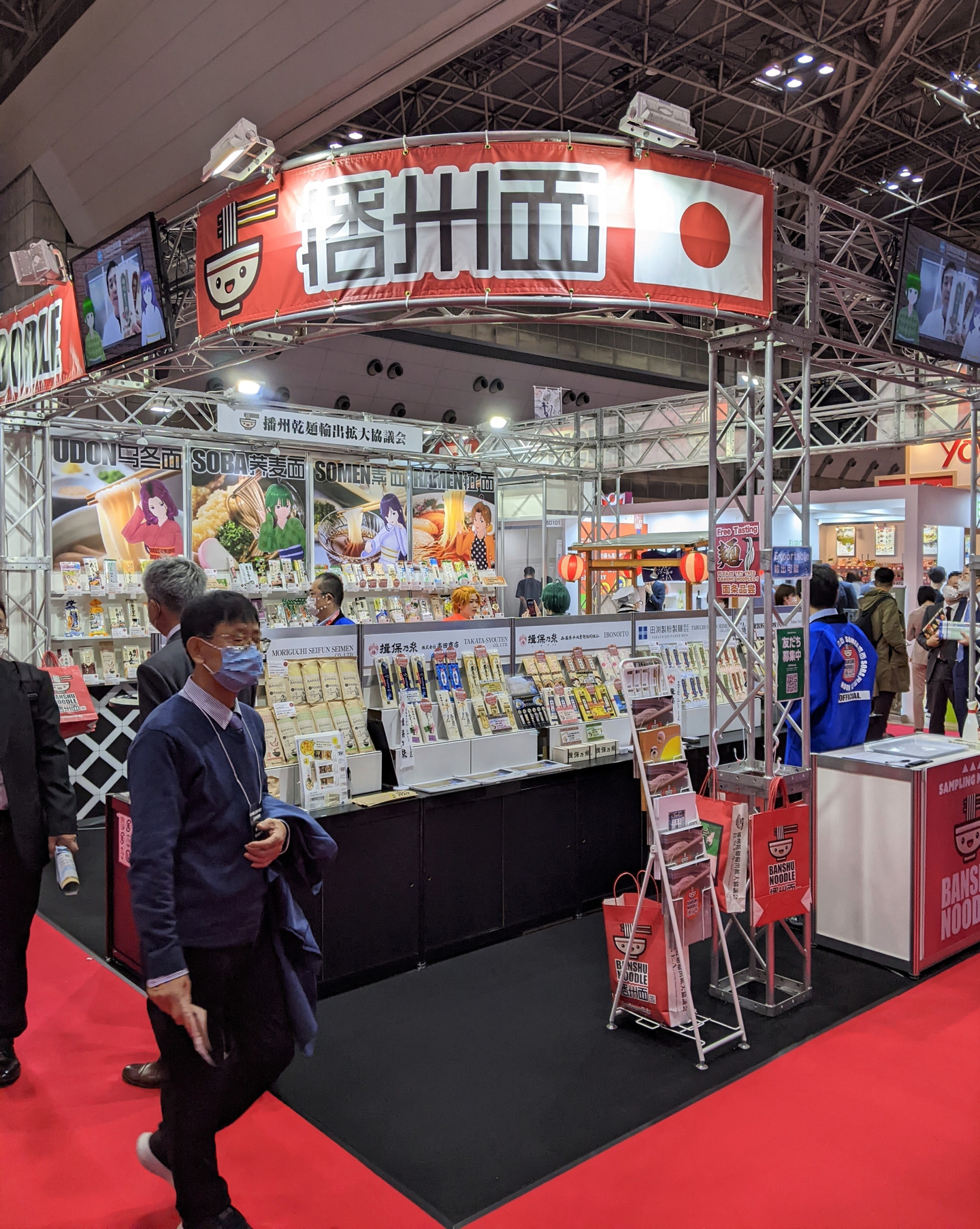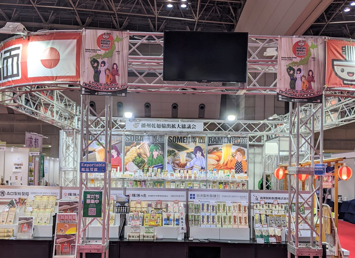 この度も、海外向けの食品を持つ企業が国内外より多数出店しているなか、弊社も『播州乾麺輸出拡大協議会』として出展しました。