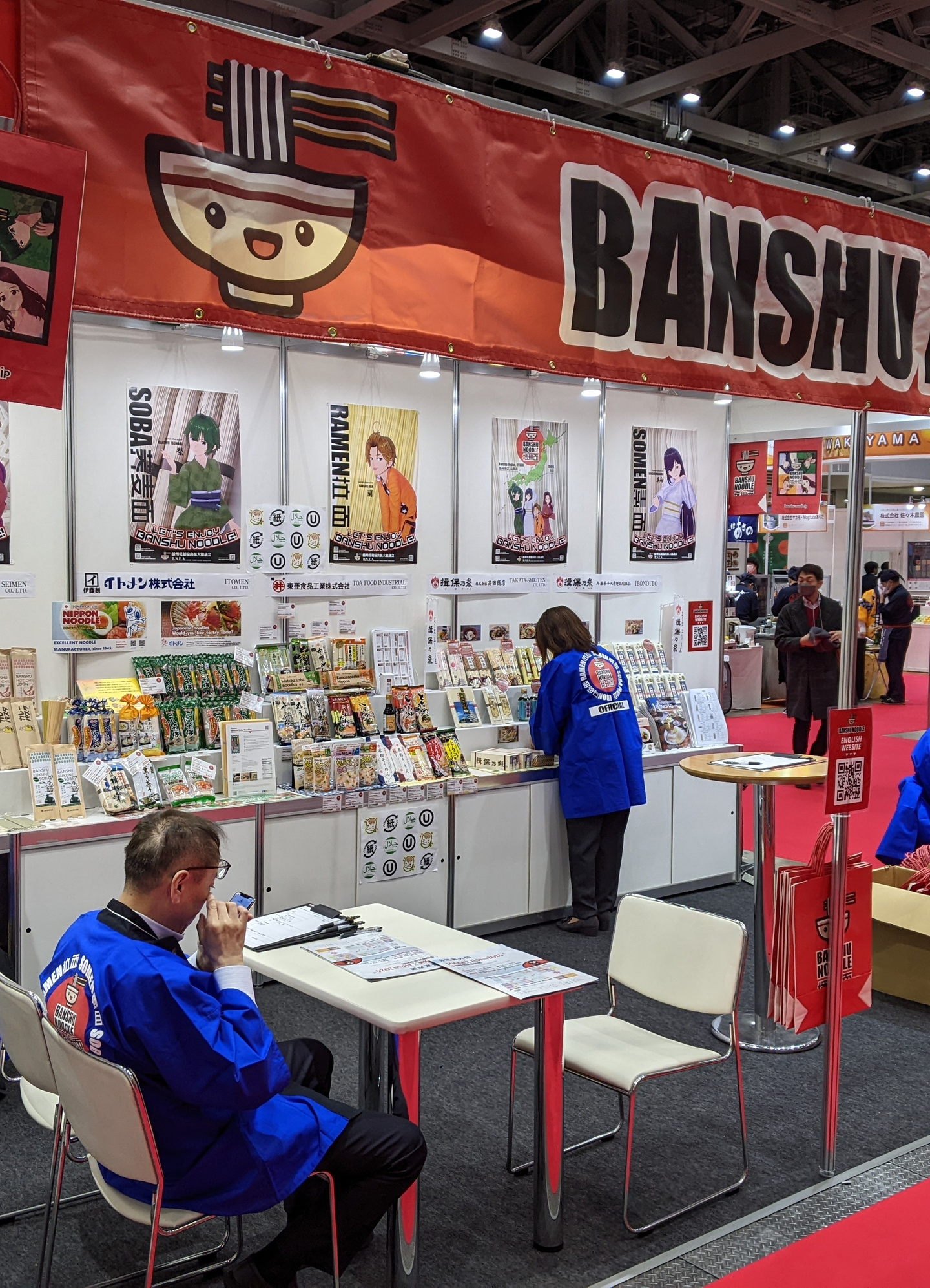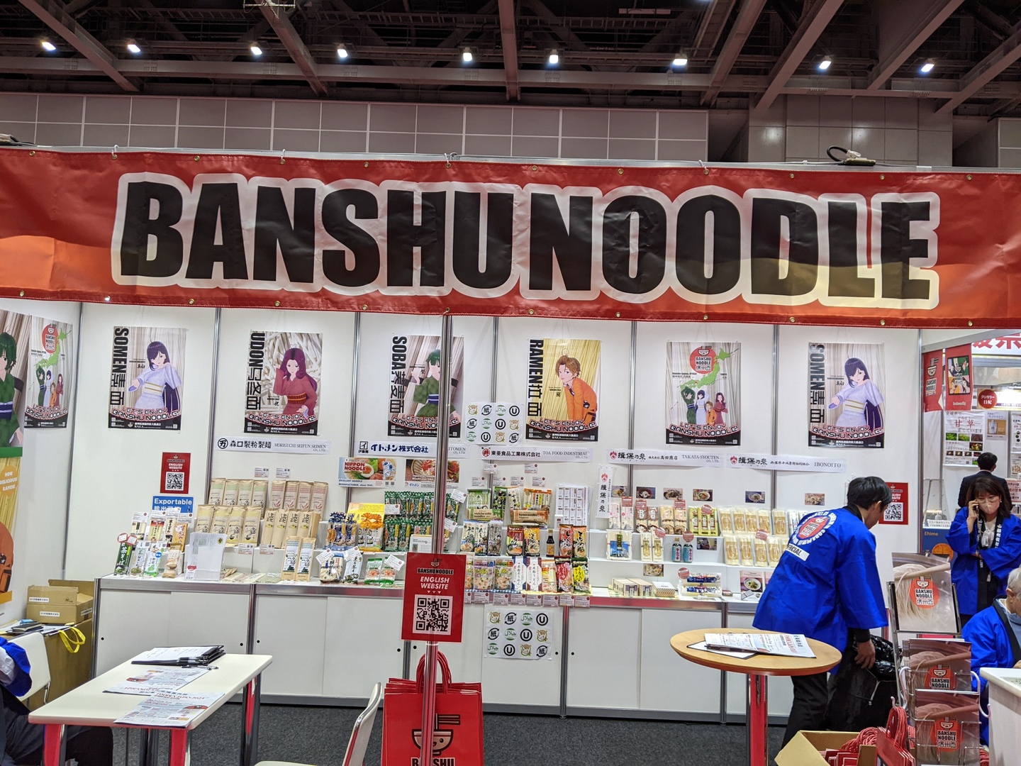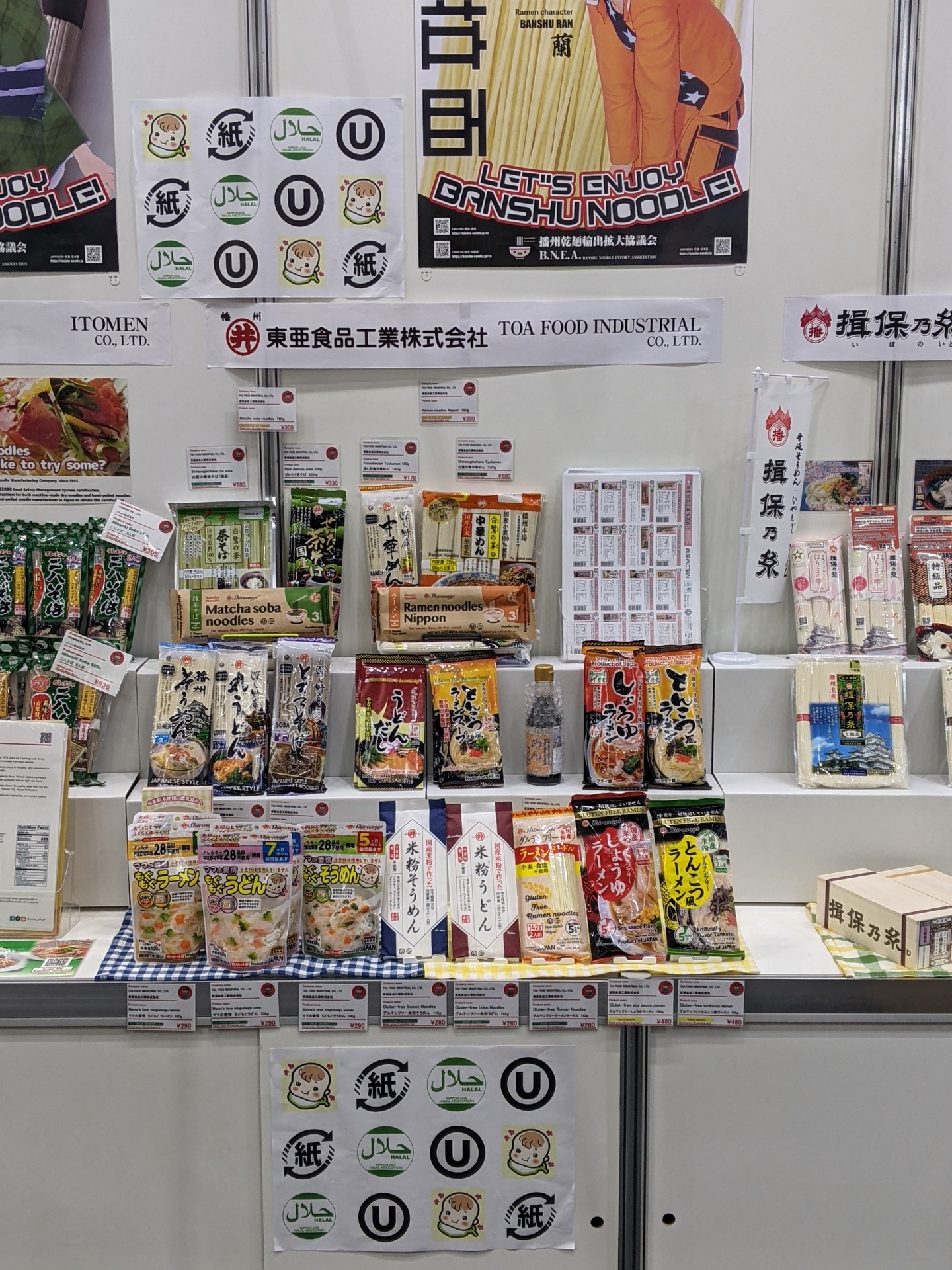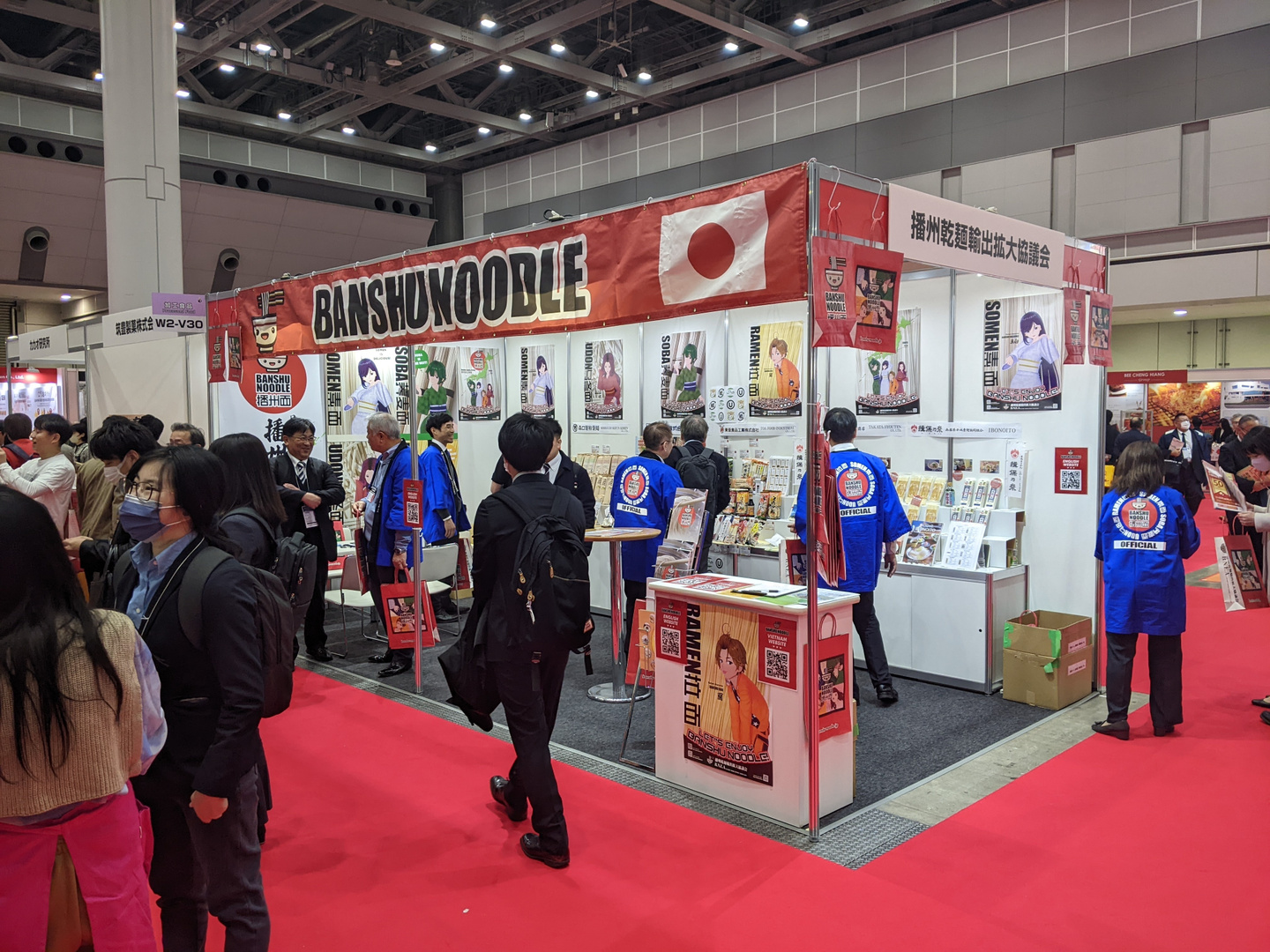 この度も、海外向けの食品を持つ企業が国内外より多数出店しているなか、弊社も『播州乾麺輸出拡大協議会』として出展しました。
