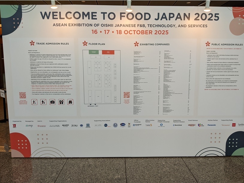 2025年10月16日(木)~10月18日(土)までの3日間、サンテックシンガポールにて開催中の『FOOD JAPAN 2025 国際食品・飲料展』へ出展しております。