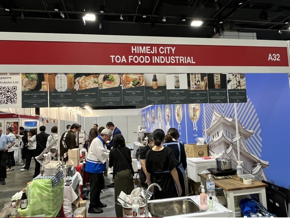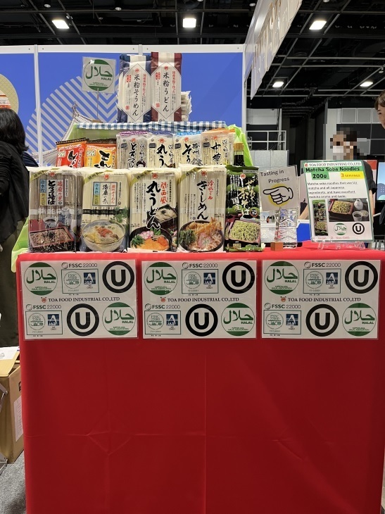 この度も、海外向けの食品を持つ企業が国内外より多数出店しているなか、弊社も『播州乾麺輸出拡大協議会』として出展しました。