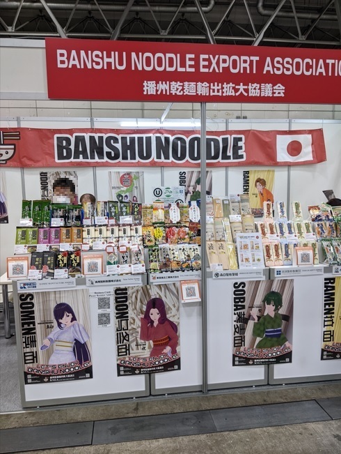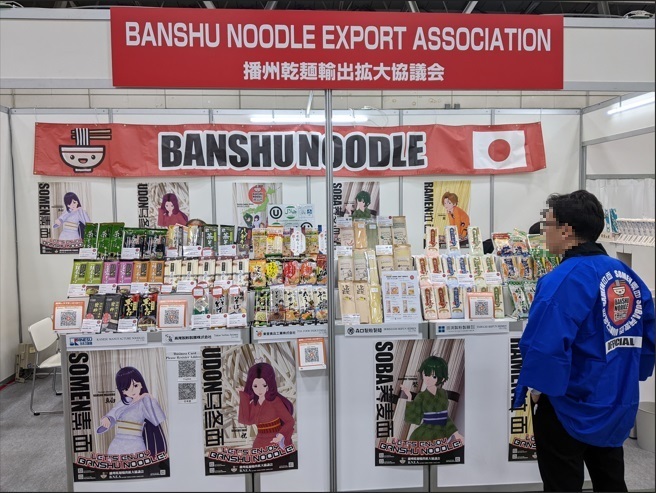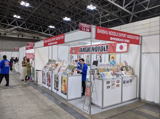 この度も、海外向けの食品を持つ企業が国内外より多数出店しているなか、弊社も『播州乾麺輸出拡大協議会』として出展しました。